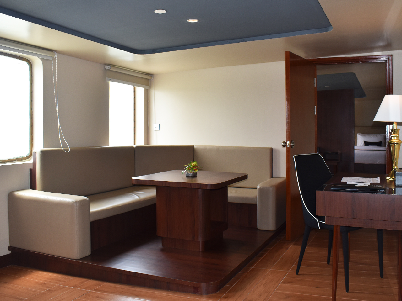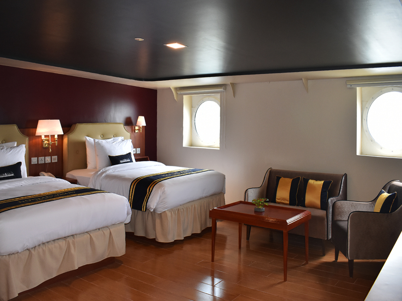 Luxurious cabins with generous floor space, beautifully decked out in period fashion to reflect the timeless beauty of a 105-year-old maritime heritage icon. Each cabin features a chill-out area with either sofas and armchairs or a cozy built-in booth seat.